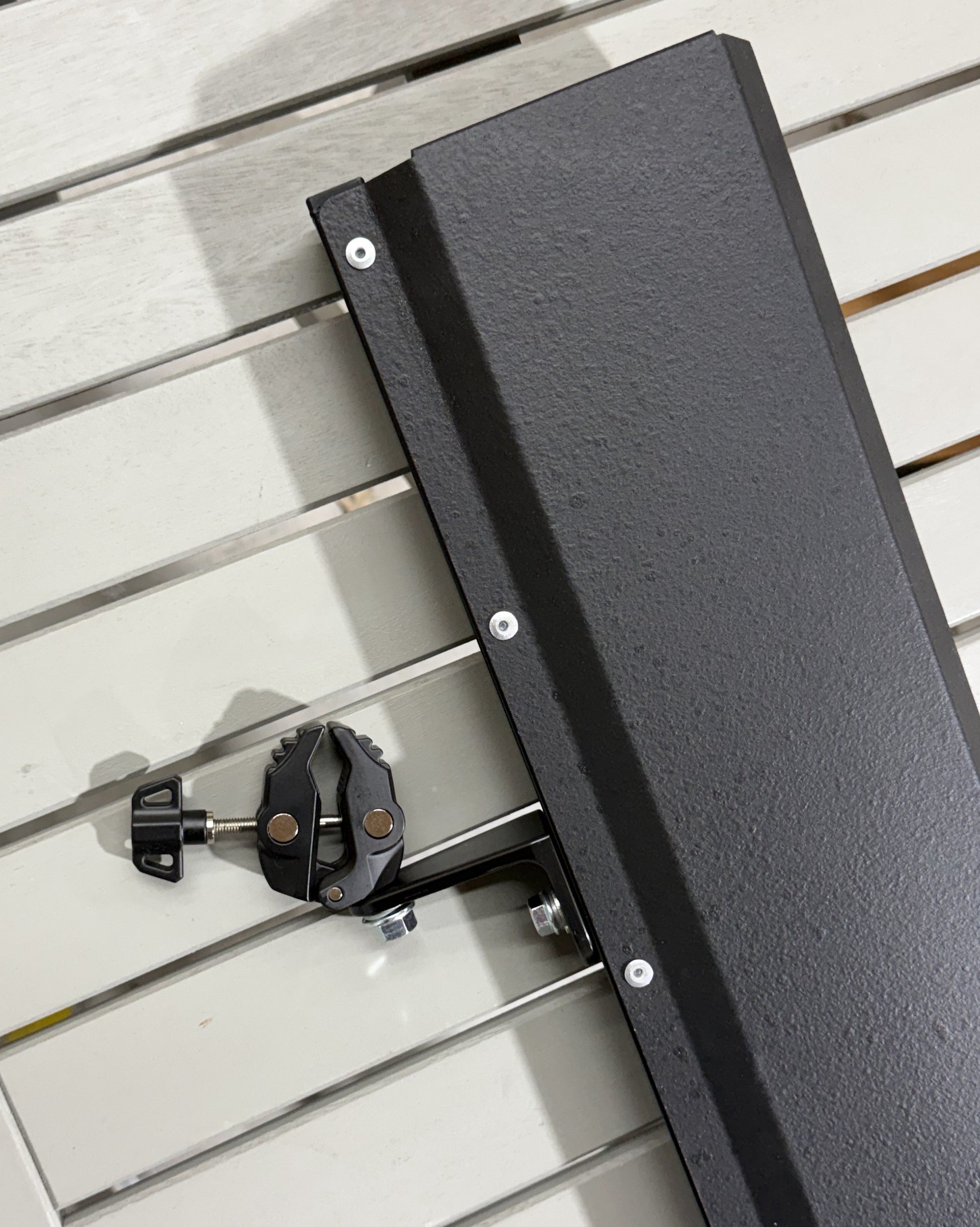 - Clamps can be removed and angle brackets bolted directly to mounting lugs on frame if so desired by user. In certain use cases this may be preferred if easy remove-ability does not provide value.
